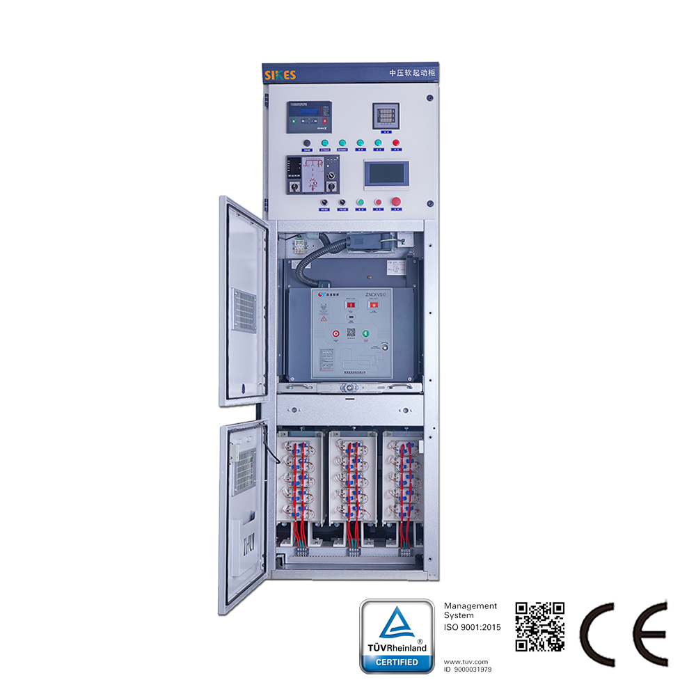 Шкаф интегрированного устройства плавного пуска серии HVT — это новое устройство плавного пуска, разработанное компанией Sikes Electric. Данное устройство представляет собой высокопроизводительное, многофункциональное и высокобезопасное интеллектуальное оборудование, разработанное с использованием передовых теорий управления. Оно в основном применяется для управления и защиты высоковольтных электродвигателей при пуске, работе и останове. Шкаф интегрированного устройства плавного пуска серии HVT построен на базе высокоскоростного цифрового сигнального процессора, включает современные передовые методы управления и различные динамические и статические меры защиты для достижения высокой производительности. Устройство может динамически, в реальном времени и эффективно ограничивать пусковой ток двигателя в пределах заданного значения, предотвращая провалы напряжения в сети из-за чрезмерного пускового тока. Оно обеспечивает плавный пуск, снижает требуемую мощность трансформаторного и распределительного оборудования и экономит инвестиционные затраты на проект. Устройство предоставляет комплексные, надежные и точные функции защиты двигателя, включая защиту от сверхтока, перегрузки, дисбаланса токов, обрыва фазы и неисправностей тиристоров.