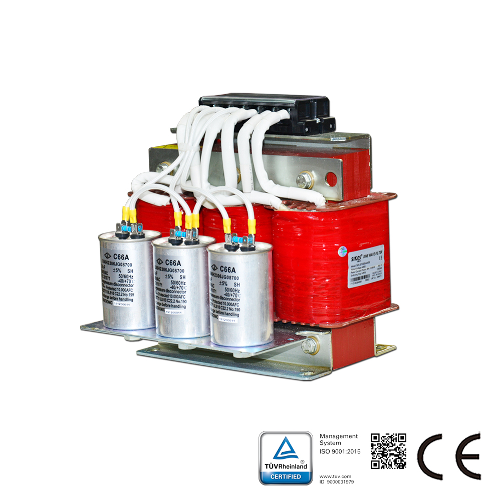 Синусоидальные фильтры Sikes для различных серводвигателей в системах с частотно-регулируемым приводом (особенно для инверторов или импульсных источников питания) предназначены для изменения ШИМ-выходного напряжения инвертора и формирования практически синусоидального напряжения. Пассивная серия предназначена для использования в сетях 380В-480В.