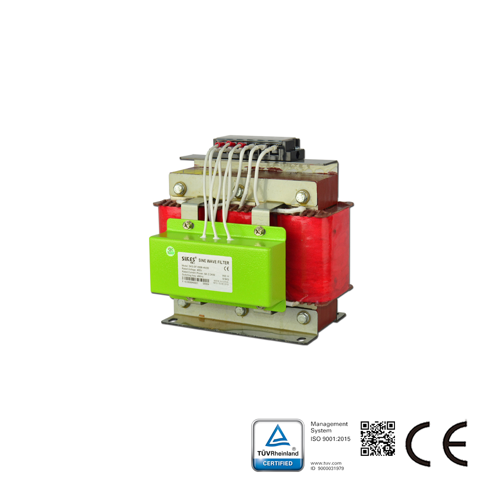 Синусоидальные фильтры Sikes для различных серводвигателей в системах с частотно-регулируемым приводом (особенно для инверторов или импульсных источников питания) предназначены для изменения ШИМ-выходного напряжения инвертора и формирования практически синусоидального напряжения. Пассивная серия предназначена для использования в сетях 380В-480В.
